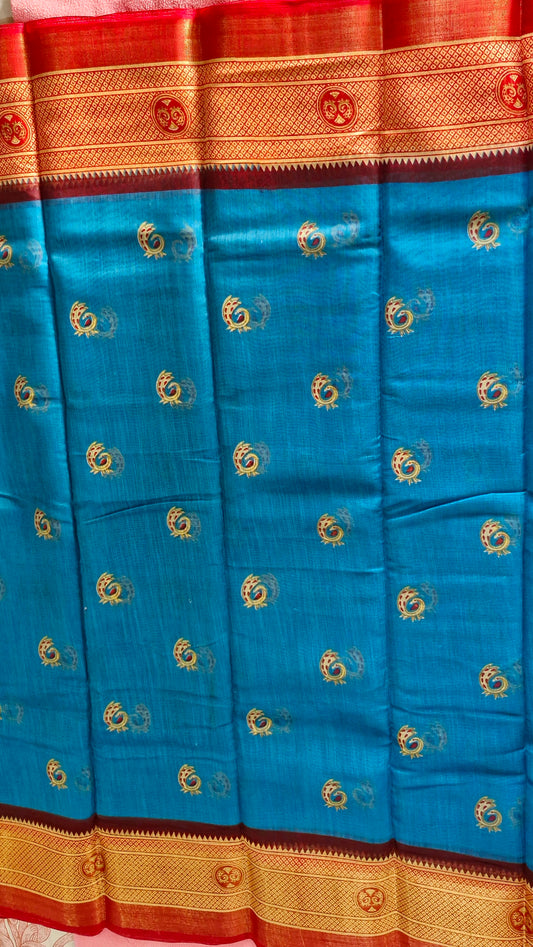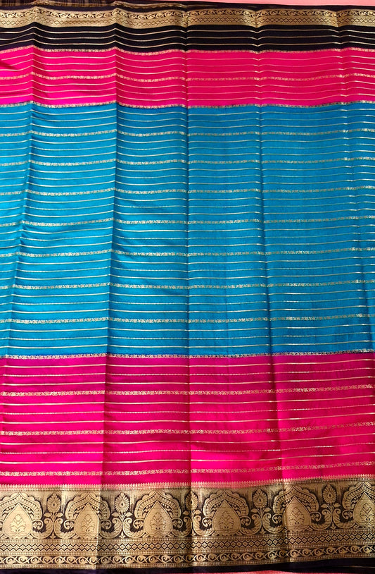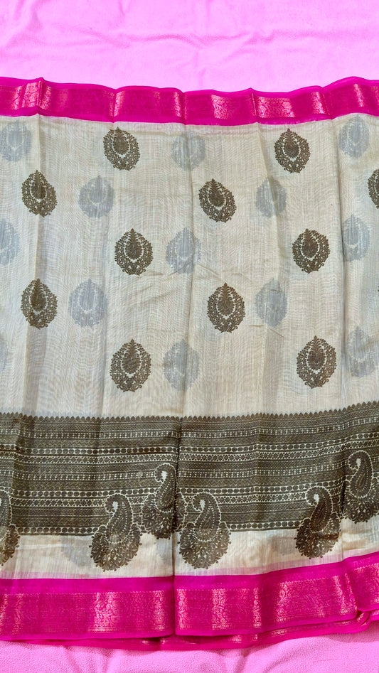 3D OFF-WHITE YELLOW BLUE CREPE SILK SAREE