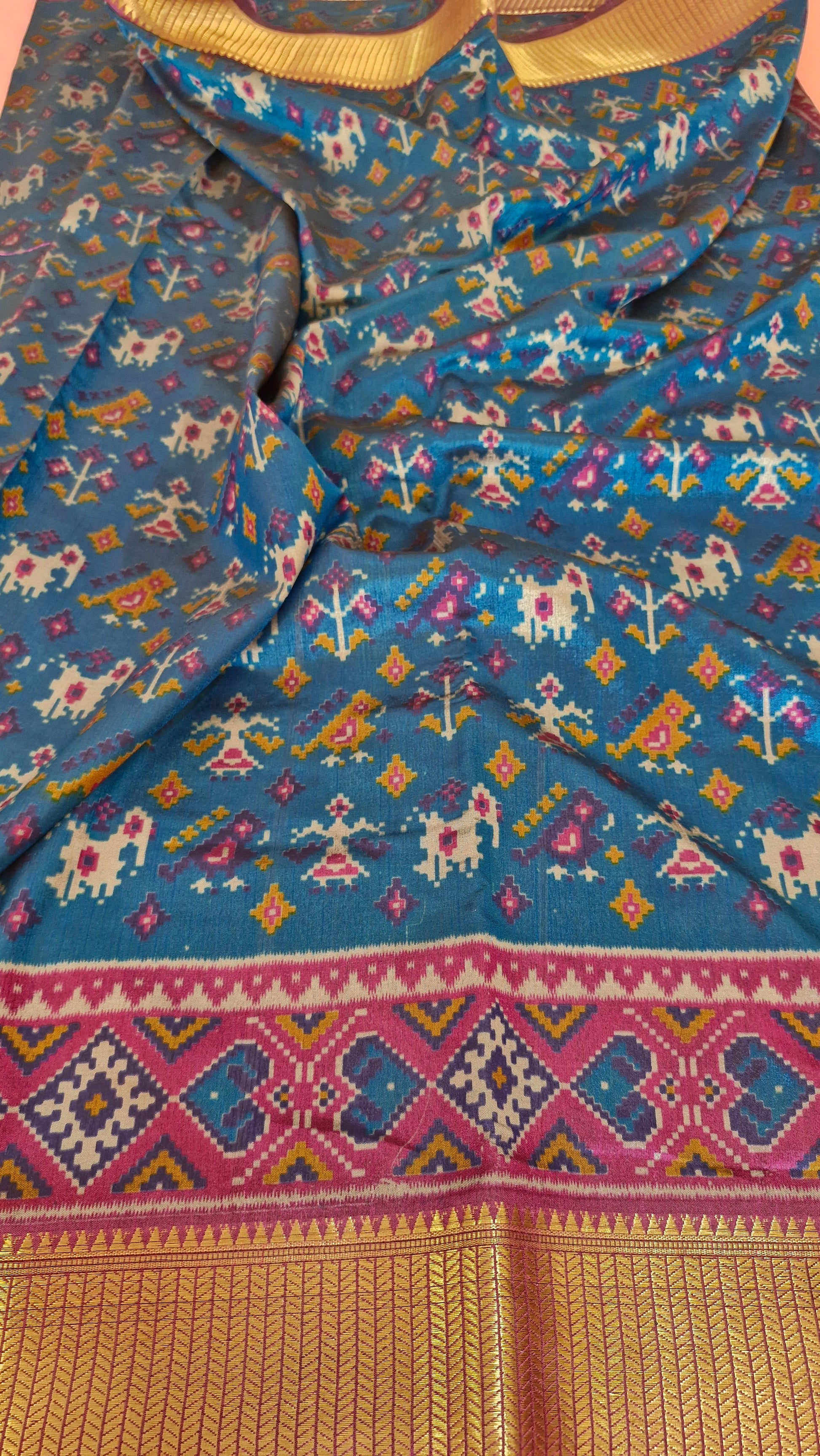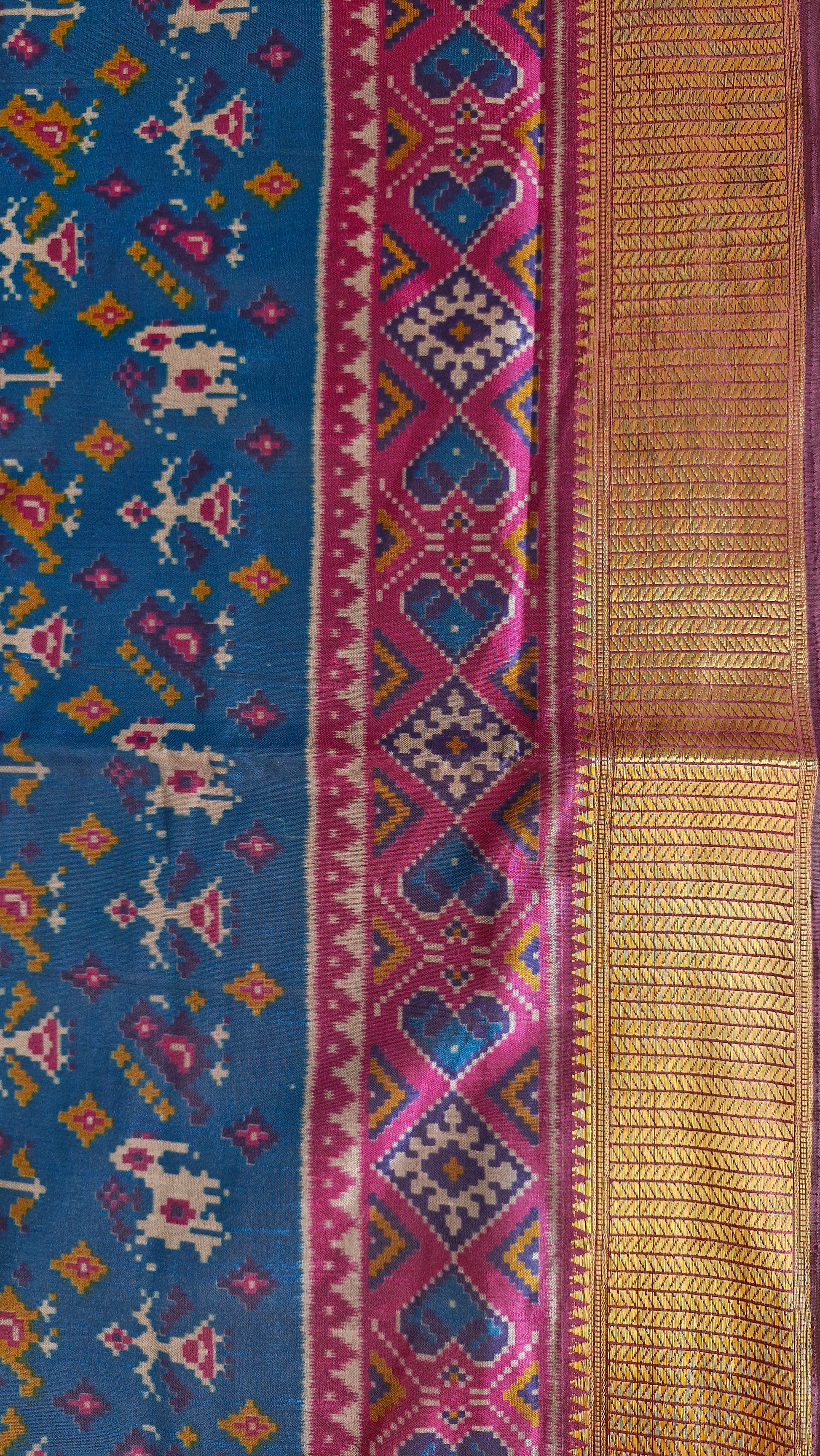 Bold and timeless – this vibrant blue Pochampalli silk saree showcases rich heritage with striking patterns and a luminous finish, perfect for making a statement.