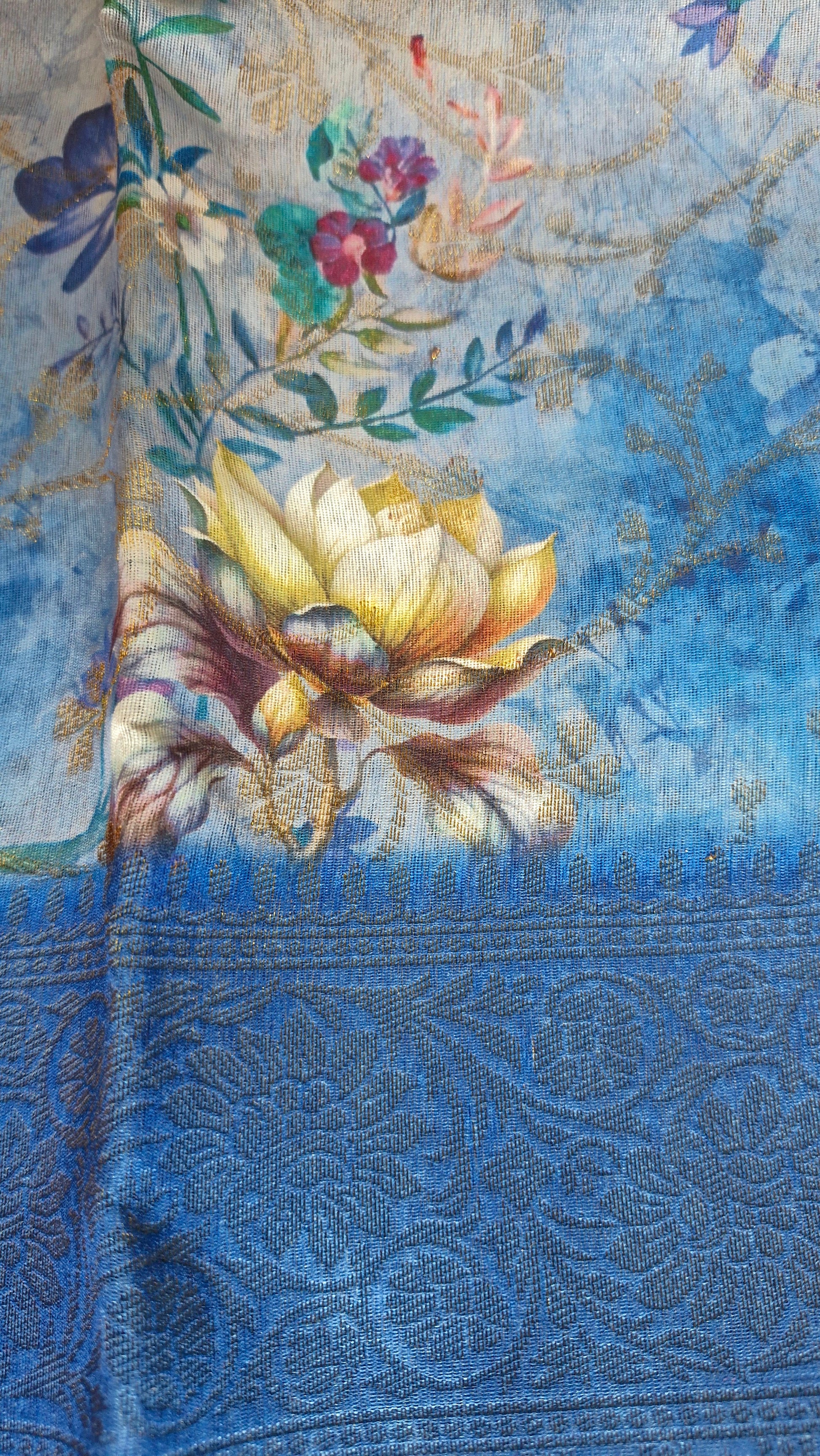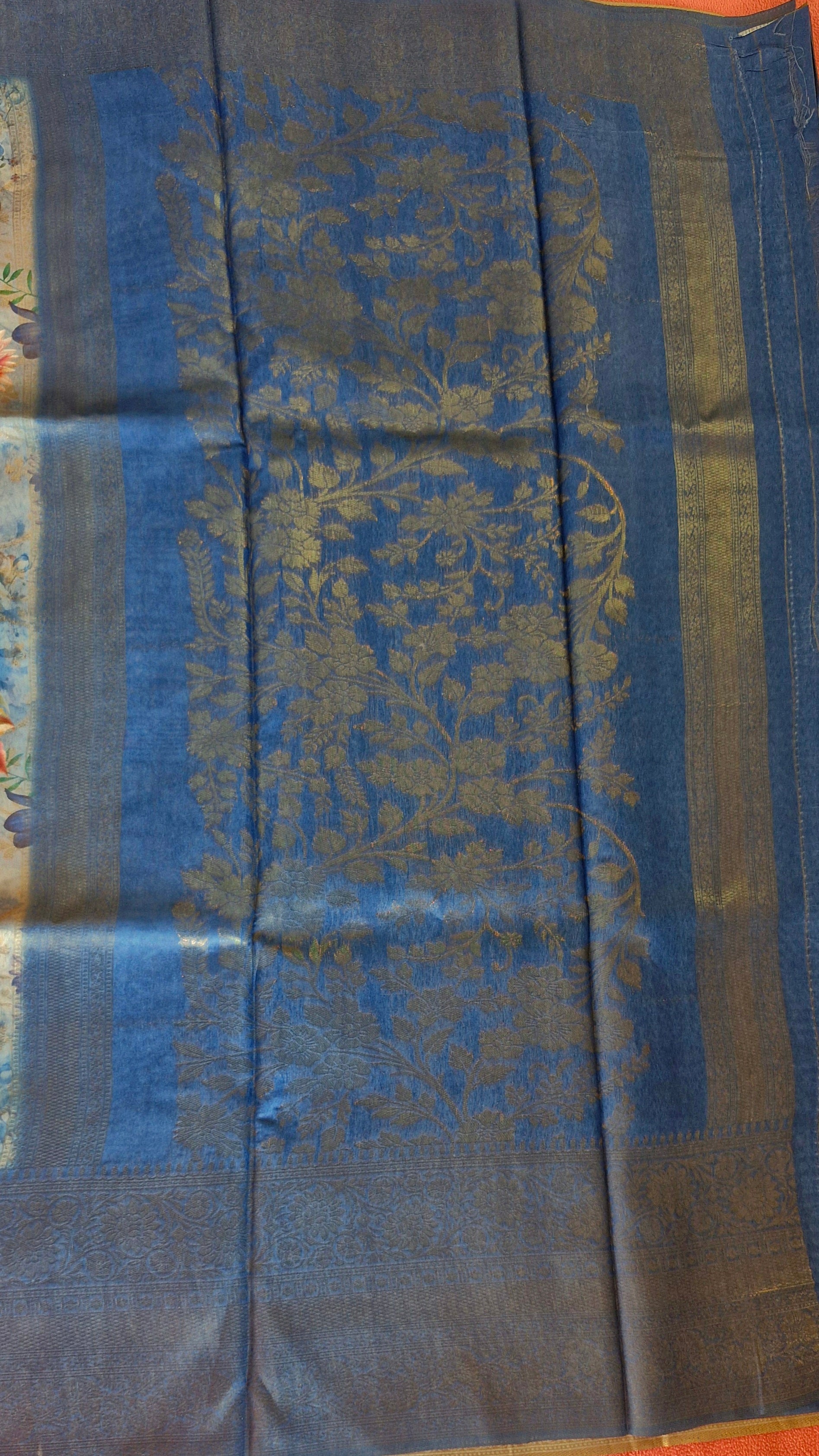 BLUE FLORAL ORGANZA SAREE