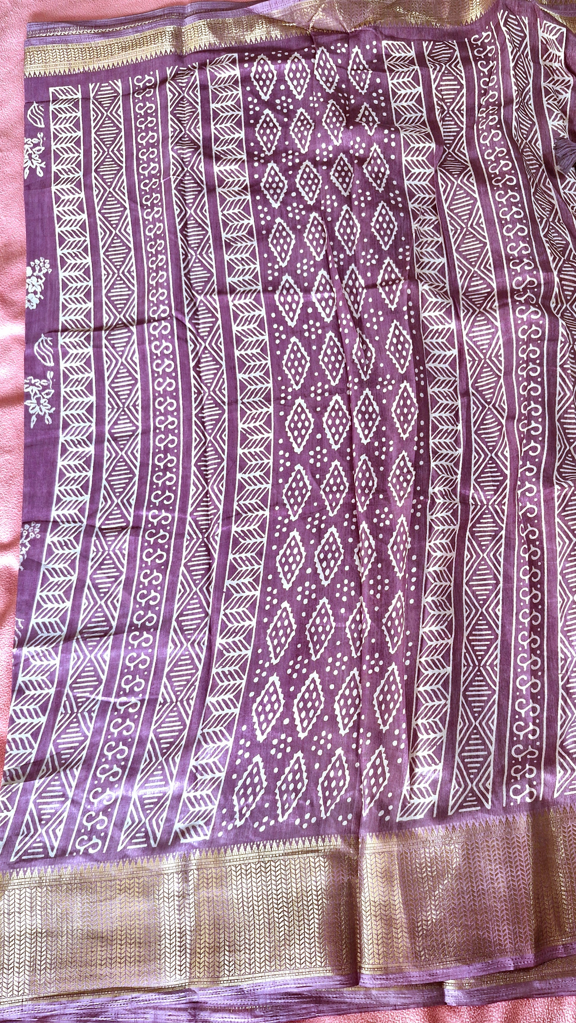 Make a statement with this lightweight cotton silk mauve saree, perfect for travel and effortless elegance.